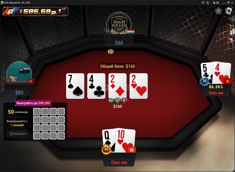 У Вас есть только два варианта: All-In or Fold! Четыре игрока за столом максимально.