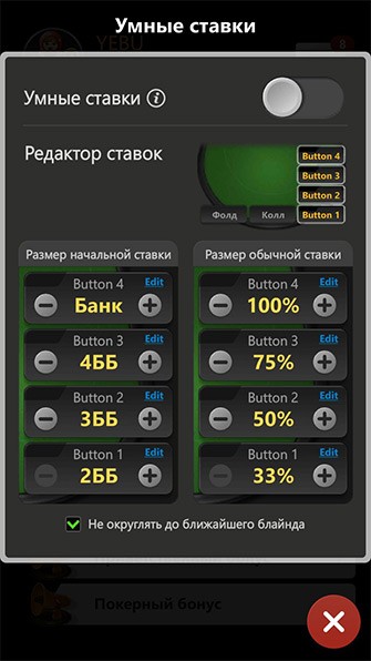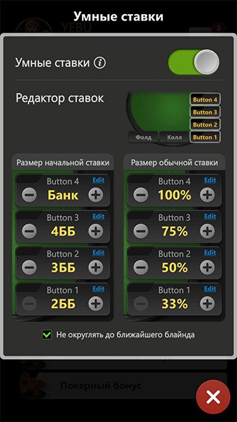 - Smart bet поддерживает следующие типы игр: Hold'em, Rush & Cash, Omaha. (Турниры, AoF, Китайский Холдем не поддерживаются)
