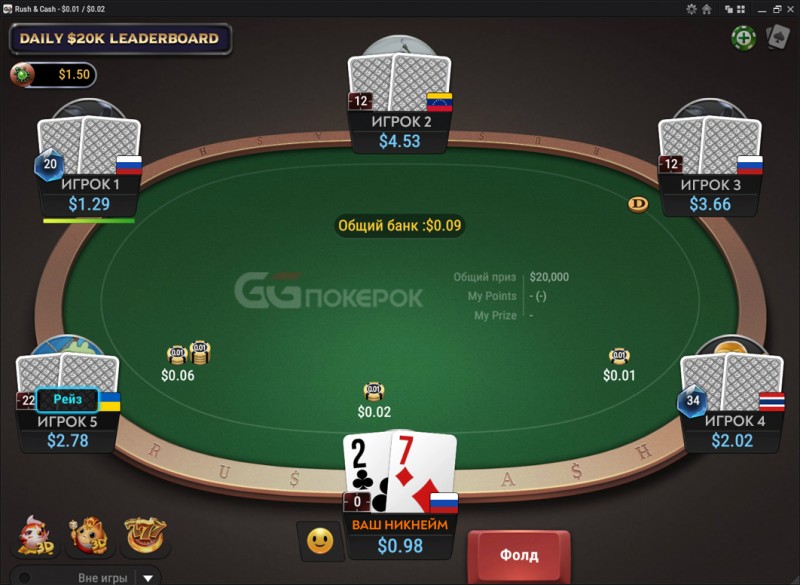 Самый быстрый покер. Вы можете нажать Fold до начала раздачи и перейти к следующей руке.